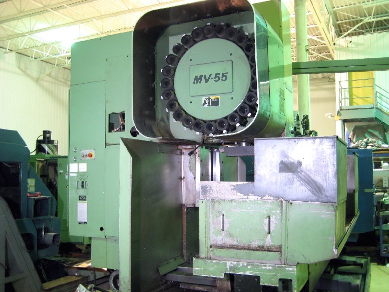 MORI SEIKI MV-55 / 50 TAPER CNC MILL, 40 x 22 x 22, FANUC, GEARBOX, BOX WAY, 3500 RPM, CHIP CONVEYOR, 1986