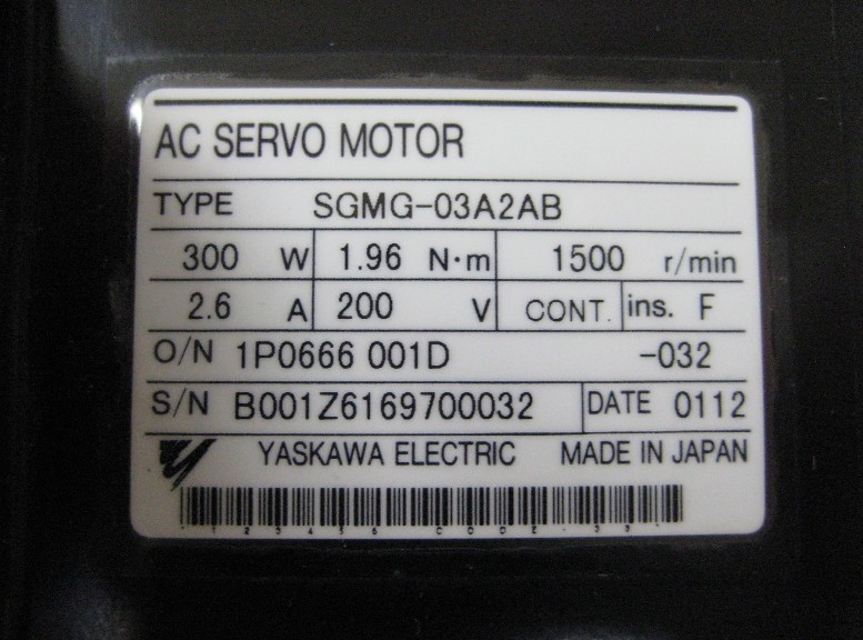 YASKAWA SGMG-03A2AB AC Servo Motor CNC Axis Drive, Tested, Often used on Haas