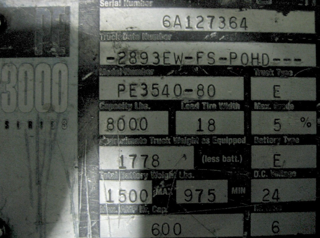 8000 LB CROWN ELECTRIC FORK LIFT, PALLET JACK, 96 in. FORKS, MODEL PE3540-80, RIDE ON, WALK BEHIND, 24 VOLT