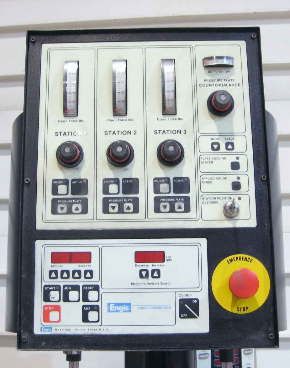 HYPREZ ENGIS 28 LM LAPPING MACHINE, 28 in. LAPPER PLATE, 3 PRESSURE RING STATIONS, ELECTRONIC DISPENSER OF LUBRICANT