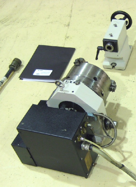 TROYKE DL-9-B 4th AXIS CNC ROTARY TABLE, 9 IN. DIAMETER, 3 JAW CHUCK, TAIL STOCK, 0.001 DEG.