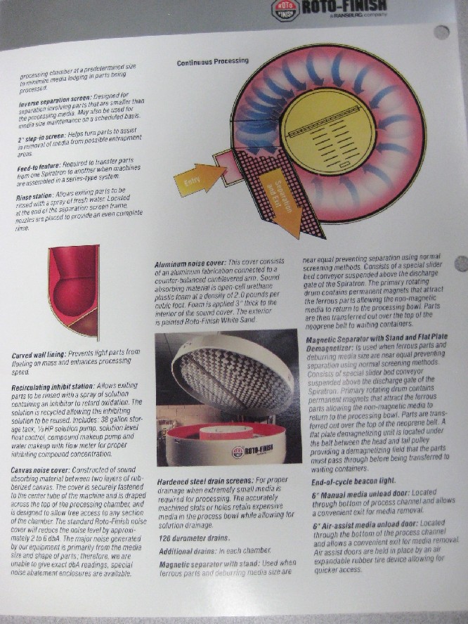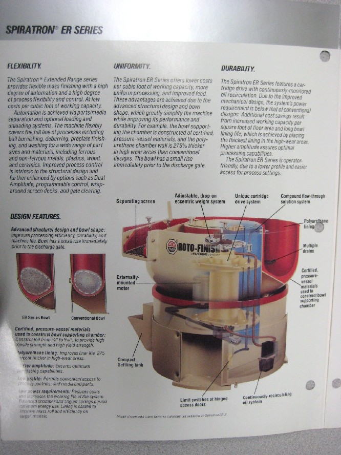 ROTO-FINISH HAMMOND VIBRATORY BOWL FINISHER, SPIRATRON ER-0203 S, 3 CUBIC FEET, PARTS SEPARATOR, COOLANT